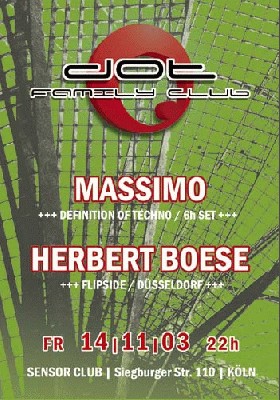 Am 14. Nov. findet zum zweiten Mal der DOT Family Club im Sensor/Köln statt. Der kleine Bruder der großen Events ist bewusst familär angelegt und soll Künstler und Freunde einladen, denen wir im Rahmen der DEFINITION OF TECHNO Events keine Plattform bieten können. Am 14.11. wird nun zum zweiten Mal der DOT Family Club im Sensor gastieren.